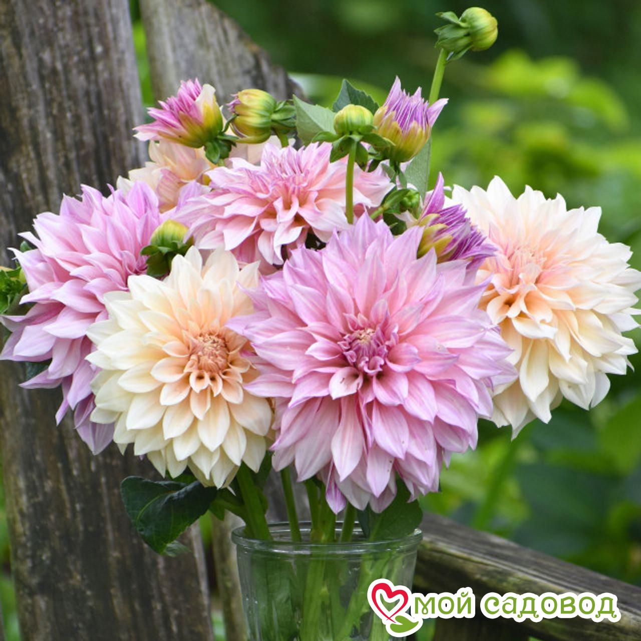 Георгина декоративная Кафе о Лейт (Cafe au Lait) — самый представительный цветок среди всех сортов георгин. На длинных, достигающих 1,5 м в высоту, стеблях располагается настоящее произведение искусства – пышное крупное соцветие цвета кофе с молоком. Цветок может достигать 22 см в диаметре. Лепестки бархатные, слегка закрученные, остроконечные, отгибающиеся к стеблю. Что придает соцветию необычайный объем. Листья овальные, крупные, темно-зеленые. Для достижения наиболее крупных цветков следует срезать боковые бутоны. Посадка георгины: Высаживать георгины в грунт можно, когда земля прогреется. Ямки под георгины должны быть больше комка корней в три раза, чтобы корни георгина погрузились в них полностью и осталось ещё 5-7 см. На дно ямки уложите слой перепревшего компоста или навоза, затем присыпьте навоз землей, чтоб не обжечь корни георгина, уложите проросший клубень и прикопайте так, чтобы под землей оказалось несколько сантиметров стебля. Уход за георгиной: Мульчирование участка с георгинами, кроме защиты растений от слизней, даст вам возможность отказаться от таких утомительных работ, как прополка и рыхление почвы, а также не позволит почве в знойные дни быстро высыхать. Поливать георгины нужно обильно 1-2 раза в неделю (если не идут дожди), но не позволяйте влаге застаиваться в корнях: клубни георгин склонны к загниванию. В сильную жару сохранить влагу помогает окучивание после полива. Перед следующим поливом почву от стеблей нужно отгрести, полить растения, а затем опять окучить.